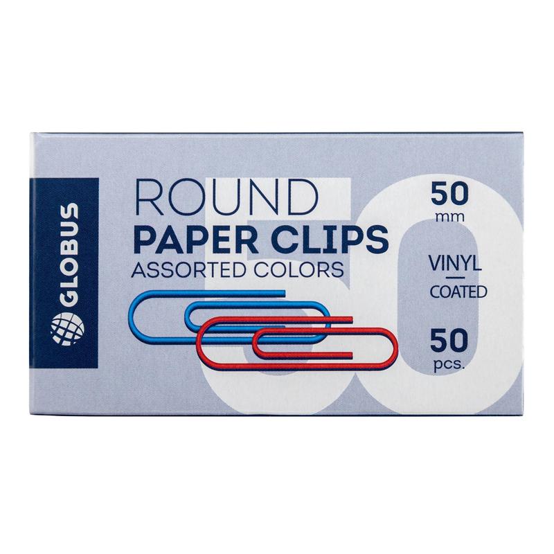 Скрепки Глобус цветные металлические с полимерным покрытием 50 мм (50 штук в упаковке)