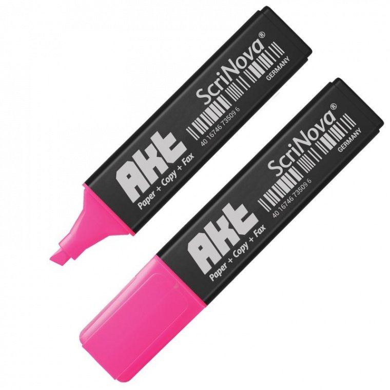 Текстовыделитель ScriNova Akt в пластиковом корпусе выполнен на водной основе, предназначенный для маркировки текста на бумаге любой плотности. Повышенный объем заправки позволяет использовать текстовыделитель дольше аналогов. Скошенный пишущий узел проводит линии разной толщины. Светоустойчивые, яркие безопасные чернила без запаха. Цвет чернил: розовый — соответствует цвету колпачка. Скошенный наконечник имеет толщину от 1 до 5 мм.