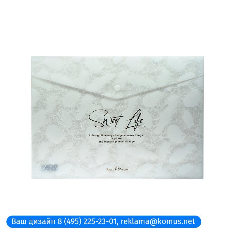 Папка-конверт на кнопке Перышки А4 180 мкм