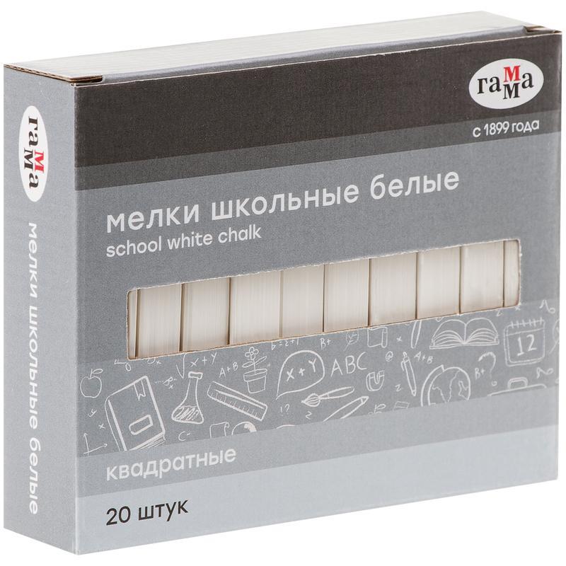 Мел школьный Гамма белые 20 штук, мягкие, квадратные, 2308195