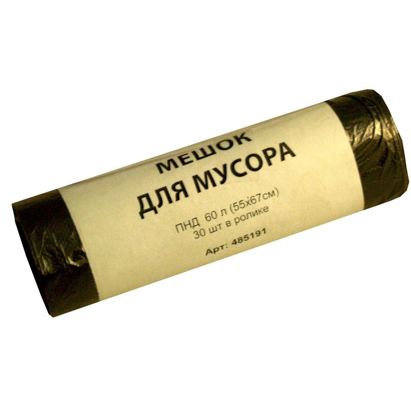 Пакеты для мусора, подходящие для сбора и временного хранения бытовых отходов. Изготовлены из полиэтилена низкого давления плотностью 7 мкм. Пленка с глянцевой поверхностью практична, водонепроницаема. Мешки для мусора объемом 60 литров поставляются в рулонах по 30 штук. Размер (55x67 см) соответствует стандартной мусорной корзине или ведру.