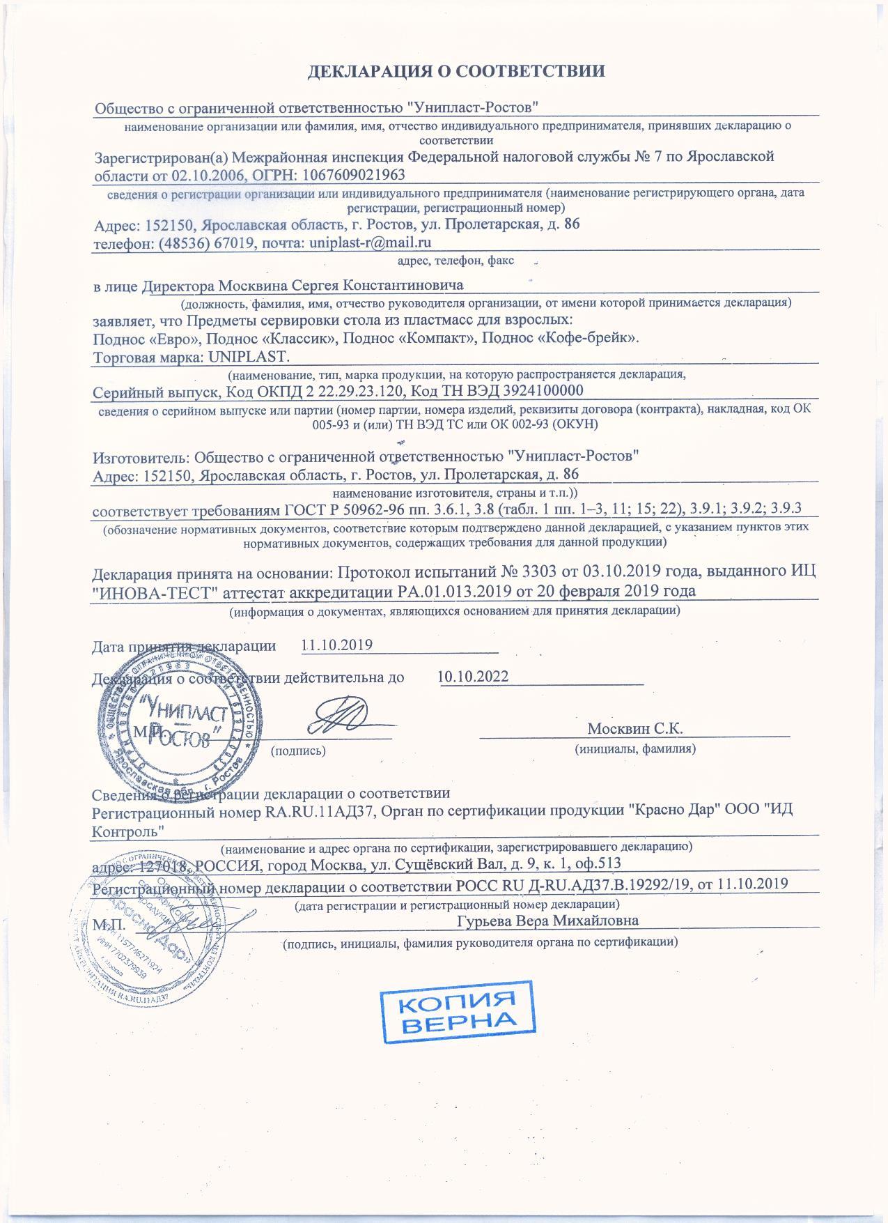 Поднос прямоугольный пластиковый Uniplast Компакт 427x302x28 мм (7601011) бежевый