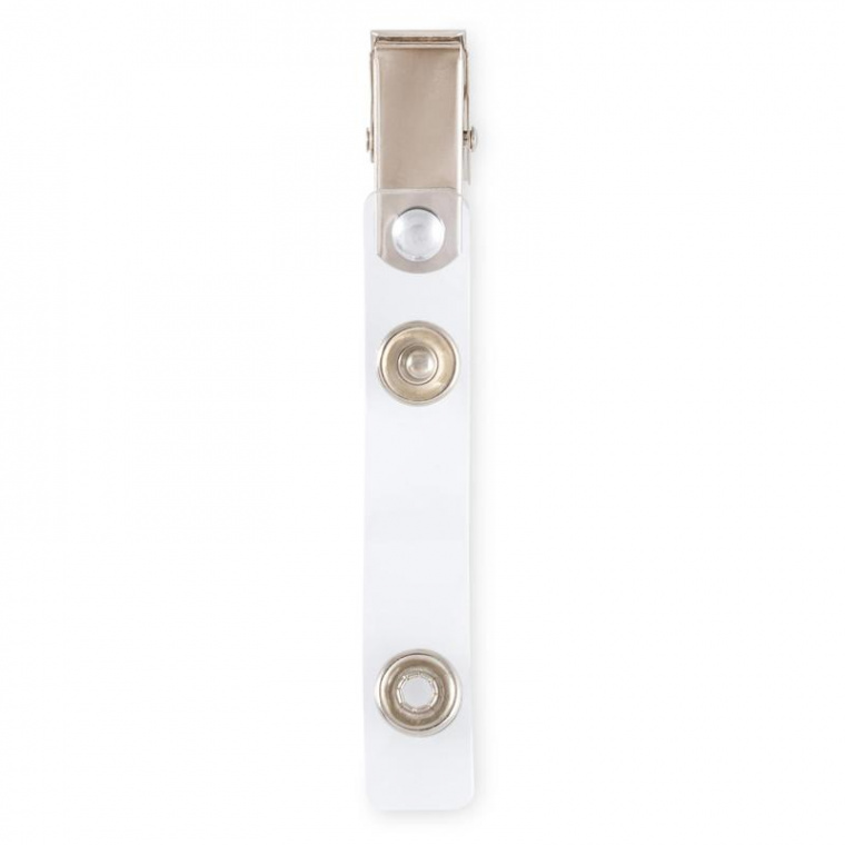 Металлическая клипса с прозрачным держателем для крепления бейджей. Клипса крепится на карман или одежду. Поставляется в упаковке по 10 штук.