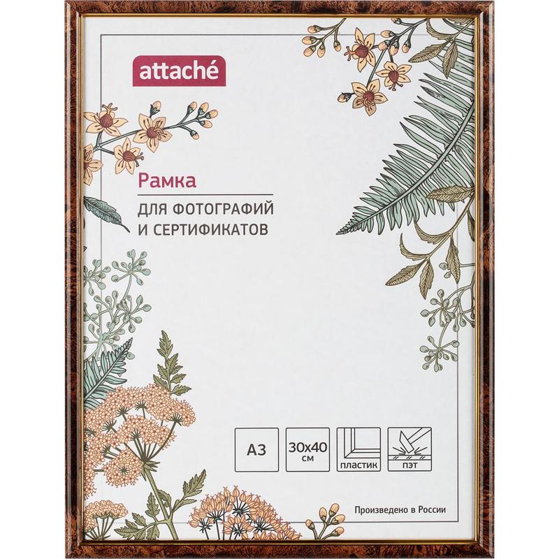 Рамка Attache A3 30x40 см пластиковый багет 14 мм коричневая (стекло)
