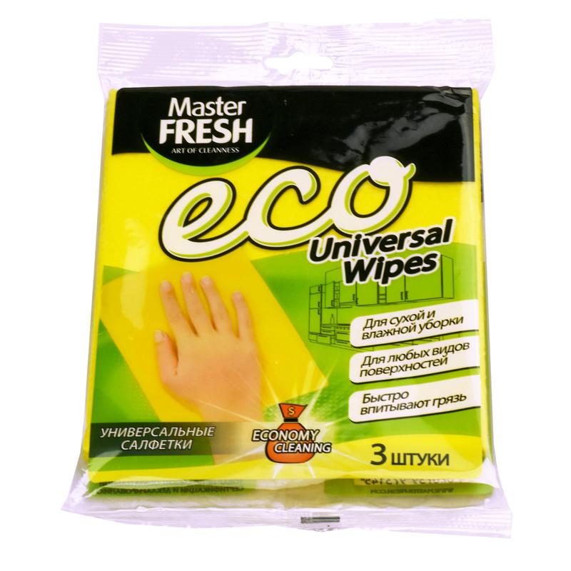 Салфетки хозяйственные Master Fresh Эконом вискоза/полиэстер 30x34 см желтые 3 штуки в упаковке