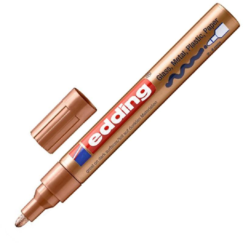 Глянцевый лаковый маркер Edding 750 - решение номер один, если нужно создать дизайн или декоративное оформление с эффектом глянца и лака на таких гладких поверхностях, как стекло, металл или пластмасса. Благодаря его насыщенным и стойким цветам, включая удивительные глянцевые оттенки металлик, Вы сможете придать окружающей Вас обстановке свежий, обновленный и в то же время особенный и стильный вид. Чернила практически не имеют запаха и после высыхания приобретают устойчивость к воздействию воды, света, тепла, а также к стиранию. Толщина линии письма 2-4 мм. Чернила медно-коричневого цвета.