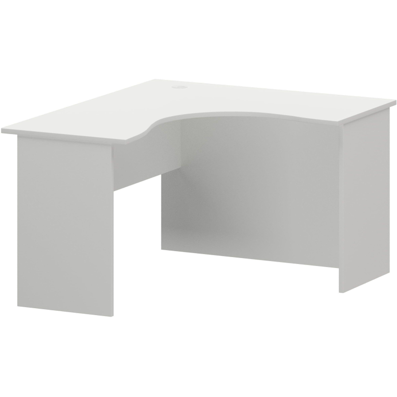 Внимание! Пожалуйста, проверяйте цвет изделия до начала сборки! Цвет на изображении товара в интернет-магазине или в печатном каталоге может отличаться от оригинала из-за особенностей цветопередачи.Эргономичный стол "Арго" с правым поворотом выполнен из ламинированной деревоплиты (ЛДСП) белого цвета. Имеет криволинейный вырез в месте сидения. Размеры столешницы 140x120 см, высота 76 см. Кромки стола отделаны лентой из ПВХ для защиты от повреждений и разбухания.