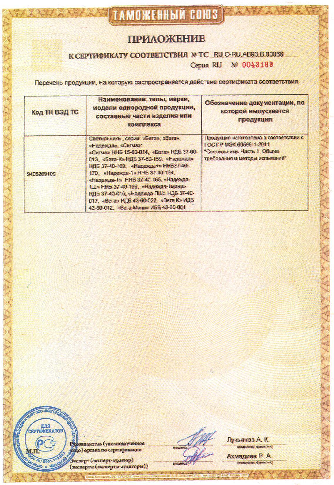 Сертификат на товар - Светильник настольный Трансвит Бета белый