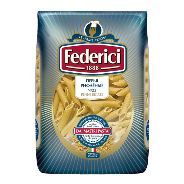 Макароны Federici перья рифленые № 23, группа А, высший сорт, 500 г.
