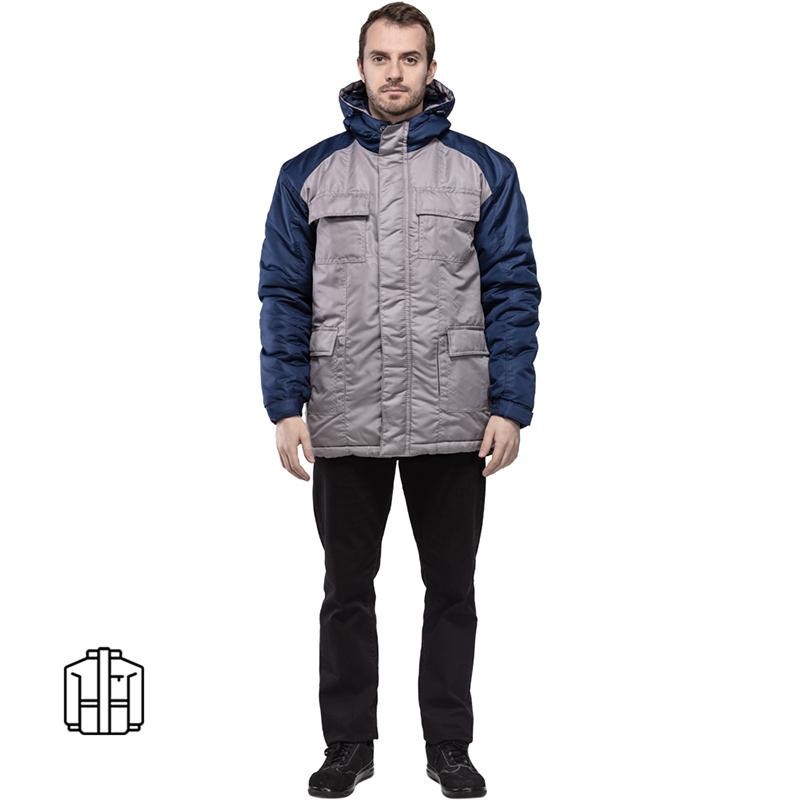 Спецодежда зимняя куртка з41-КУ изготовлена из ткани 'Таслан', имеющей специальную защитную пропитку PU, которая придает ткани водонепроницаемые и ветрозащитные свойства, а так же покрытие ткани составом WR, который отталкивает влагу, позволяя ей скатываться по поверхности изделия. Сочетание пропитки PU и WR приводит к низкой водопропускающей способности ткани. Плотность ткани 135 г/кв.м, состав 100% пэ. Утеплитель - синтепон - 200 г/кв.м. Основной цвет изделия серый, отделочный - темно-синий.Куртка мужская утепленная, с капюшоном, с центральной застежкой на молнию, с ветрозащитной планкой. Куртка имеет четыре нагрудных кармана - два с клапаном на кнопках и два прорезных на молнии, четыре боковых кармана - два с клапаном на кнопках и два прорезных на молнии, и два внутренних кармана - один накладной на липучке и один прорезной на молнии. Капюшон несъемный, состоит из трех частей, с внутренней стороны капюшона понизу проходит планка из основной ткани. Капюшон регулируемый шнуром-резинкой и фиксаторами. Рукава трехшовные, втачные, с манжетой на резинке и патой на липучке. Полочки, спинка и притачные подборта выполнены из основной ткани. Кокетки, рукава и боковые части капюшона выполнены из отделочной ткани. По низу куртки проходит отделочная планка. Низ куртки регулируется при помощи шнура-резинки и фиксаторов. Рекомендуется ли использования в сельском хозяйстве. ГОСТ 25295-2003. Коллекция зимней рабочей одежды з41 представлена куртками з41-КУ в синем цвете с красной отделкой и серого цвета с синими элементами отделки.