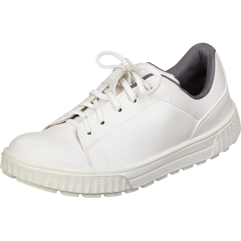 Полуботинки белые на шнурках предназначены для работников пищевой, электронной, атомной, фармацевтической промышленности. Верх обуви искусственная кожа (синтетическая кожа) - это устойчивая к загрязнениям и атмосферным воздействиям, высокотехнологичная микро волокнистая, композиционная кожа, повышенной толщины. Она состоит из мельчайших волокон, обеспечивающих доступ воздуха. Не требует ухода. Пригодна для стирки в промышленных стиральных машинах. Подкладка - воздухопроницаемое подкладочное полотно Cambrelle. Мягкий кант и перфорация на союзке обеспечивают комфорт при носке обуви. Удобная колодка и низкий вес позволяют носить обувь весь день, не испытывая усталости. Маслобензостойкая, антистатическая, износоустойчивая подошва из полиуретана. Металлический подносок.При длительном воздействии пониженных температур от -20 °C материал, из которого изготовлена обувь, теряет свои свойства и становится хрупким.