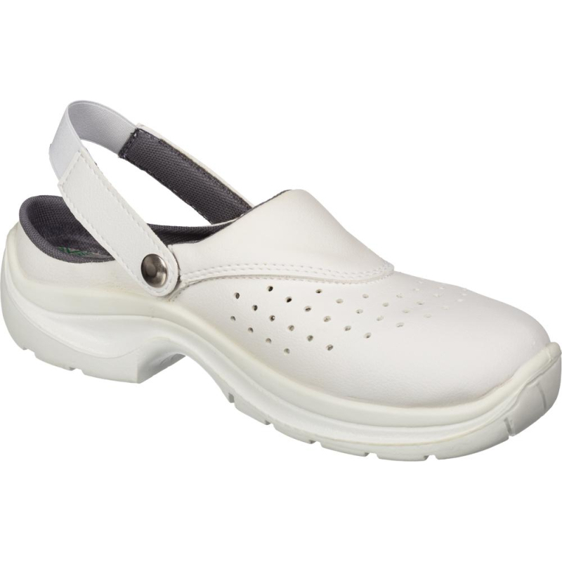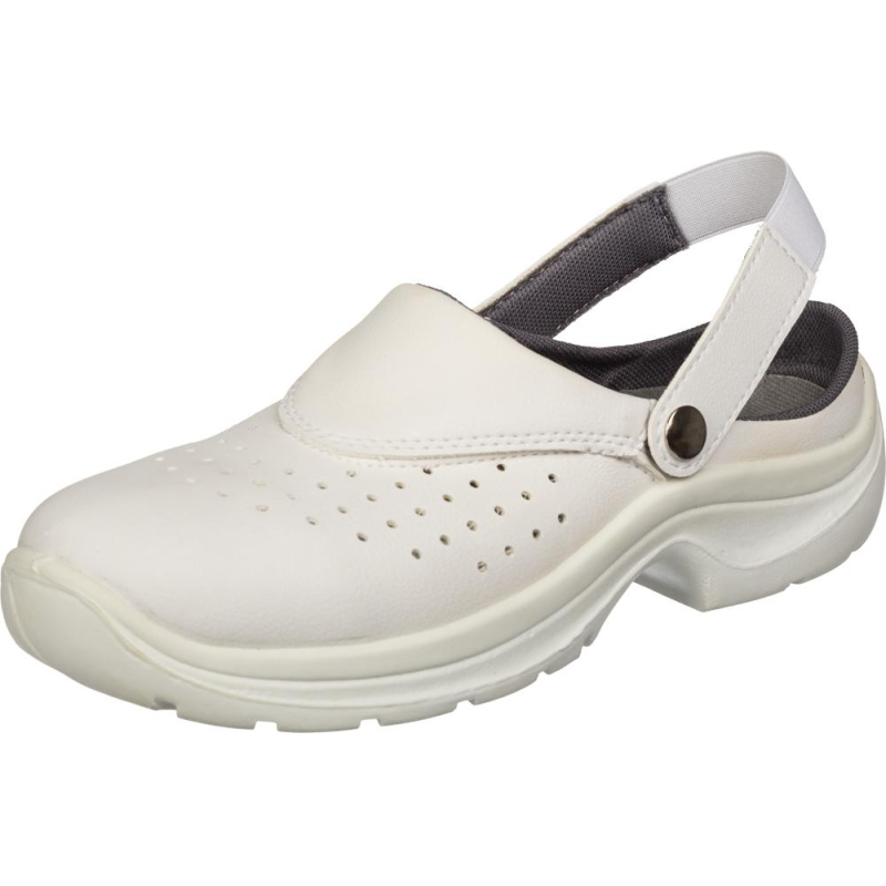 Сабо предназначены для работников пищевой, электронной, атомной, фармацевтической промышленности. Верх обуви синтетическая кожа - это устойчивая к загрязнениям и атмосферным воздействиям, высокотехнологичная микро волокнистая, композиционная кожа, повышенной толщины. Она состоит из мельчайших волокон, обеспечивающих доступ воздуха. Не требует ухода. Пригодна для стирки в промышленных стиральных машинах. Подкладка - воздухопроницаемое подкладочное полотно Cambrelle. Мягкий кант и перфорация на союзке обеспечивают комфорт при носке обуви. Термопластичный подносок. Удобная колодка и низкий вес позволяют носить обувь весь день, не испытывая усталости. Маслобензостойкая, антистатическая, износоустойчивая подошва из полиуретана.При длительном воздействии пониженных температур от -20 °C материал, из которого изготовлена обувь, теряет свои свойства и становится хрупким.