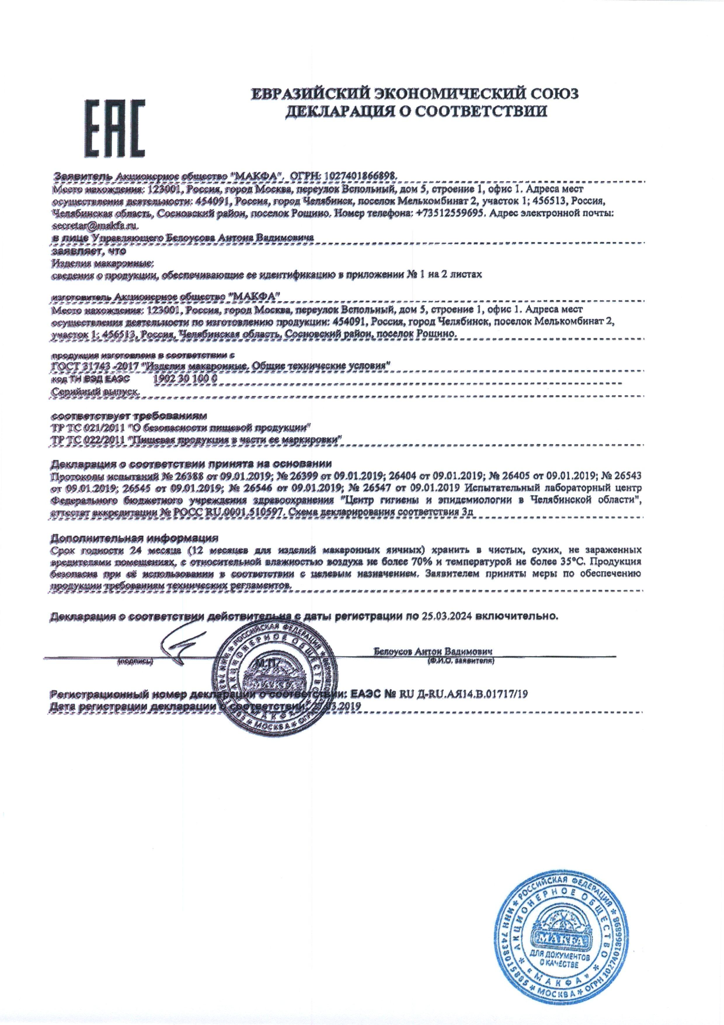 Состав: мука из твердой пшеницы для макаронных изделий высшего сорта, вода питьевая.