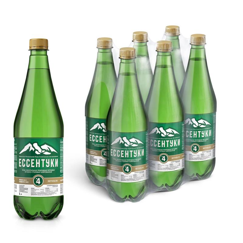 Вода минеральная Ессентуки №4 газированная 1 л (6 штук в упаковке)