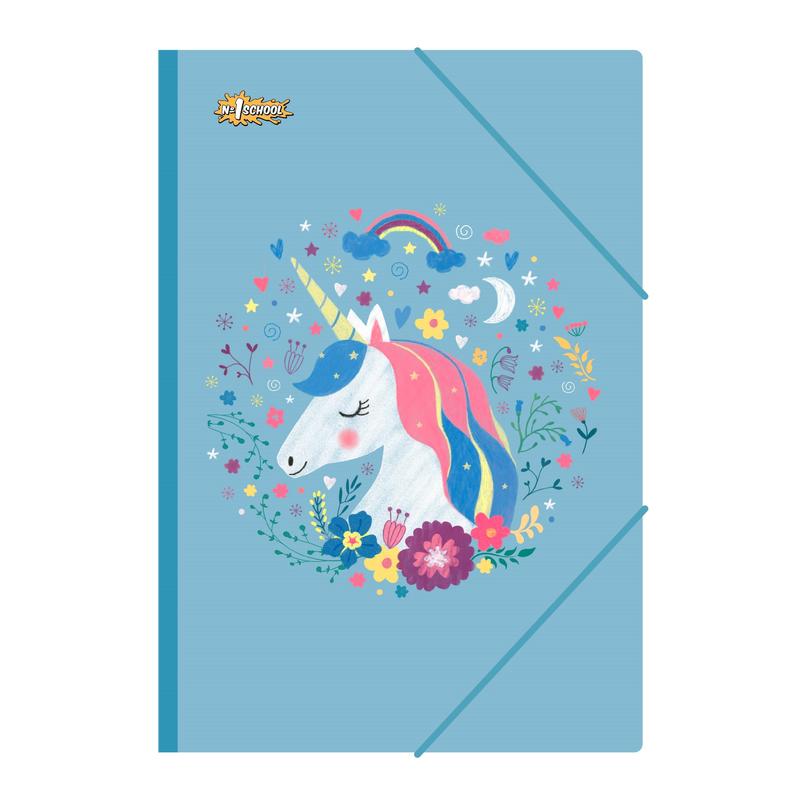 Папка на резинках №1 School Единорог A5 8 мм пластиковая до 200 листов голубая