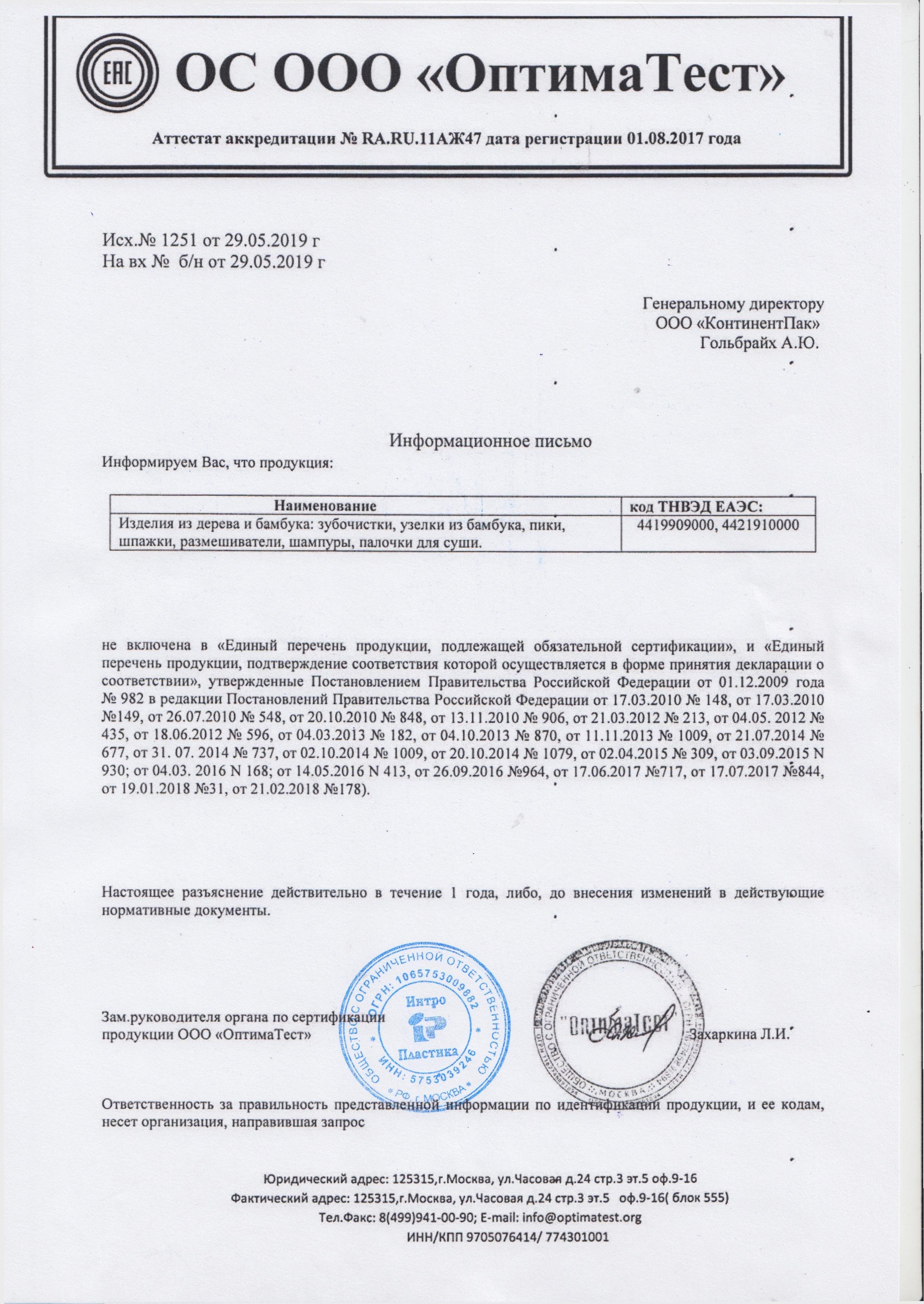 Сертификат на товар - Комплект одноразовой посуды №5 на 1 персону 200 штук в упаковке