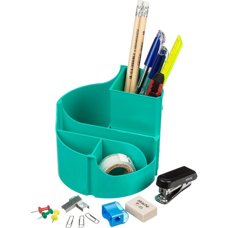 Набор настольный Attache Оптима пластиковый 14 предметов бирюзовый 6 отделений вращающийся