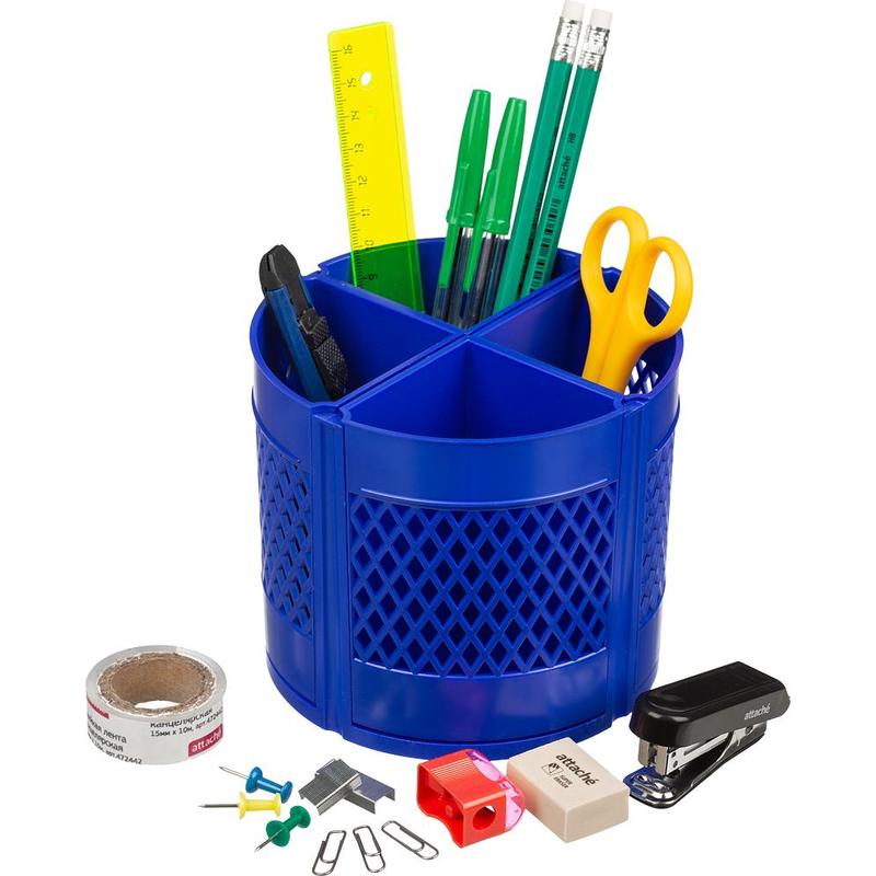 Набор настольный Attache Квартет пластиковый 15 предметов синий 8 отделений вращающийся