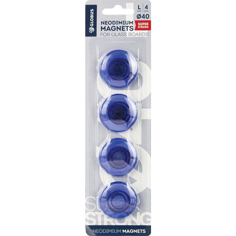 Магниты для досок (диаметр 40 мм, 4 штуки в упаковке) для стеклянных досок прозрачные синие Глобус