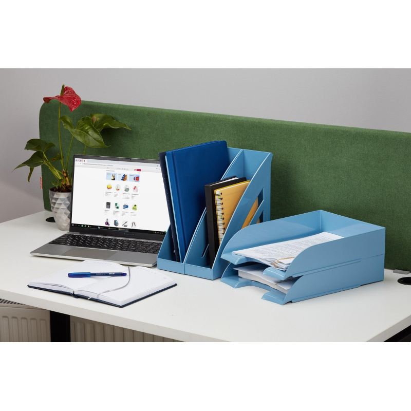 Вертикальный накопитель Комус Ницца выполнен из качественного прочного пластика голубого цвета. Благородный оттенок и современный дизайн лотка добавят Вашему рабочему месту изысканности и элегантности. Накопитель позволяет удобно хранить документы и печатную продукцию формата А4. Не занимает много места на рабочем столе. Имеет 1 отделение шириной 90 мм. Размеры изделия (ДxШxВ): 285x90x245 мм. Вес: 295 г. Обладает устойчивой конструкцией, благодаря которой является удобным для хранения объемных документов. Сочетается с другими изделиями коллекции Ницца. Этикетки для маркировки в комплект поставки не входят. Товар поставляется в собранном виде.
