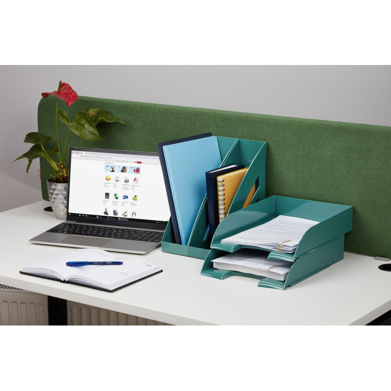 Вертикальный накопитель Комус Ницца выполнен из качественного прочного пластика зеленого цвета. Благородный оттенок и современный дизайн лотка добавят Вашему рабочему месту изысканности и элегантности. Накопитель позволяет удобно хранить документы и печатную продукцию формата А4. Не занимает много места на рабочем столе. Имеет 1 отделение шириной 90 мм. Размеры изделия (ДxШxВ): 285x90x245 мм. Вес: 295 г. Обладает устойчивой конструкцией, благодаря которой является удобным для хранения объемных документов. Сочетается с другими изделиями коллекции Ницца. Этикетки для маркировки в комплект поставки не входят. Товар поставляется в собранном виде.