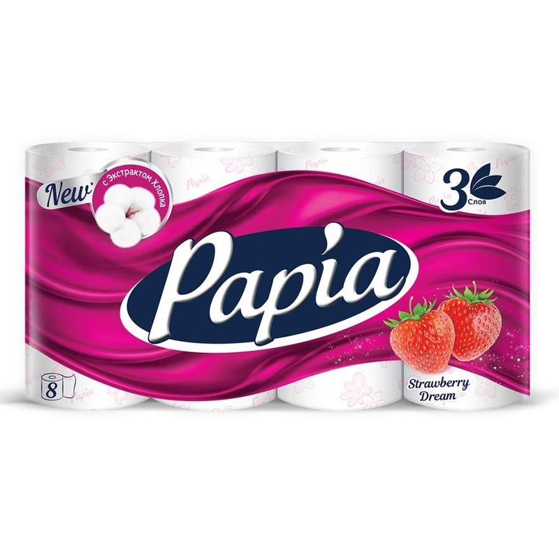 Бумага туалетная Papia 3-слойная белая Клубничная мечта (8 рулонов в упаковке)