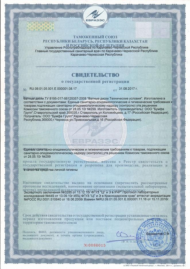 Сертификат на товар - Диски ватные Emily Style 80 штук в упаковке