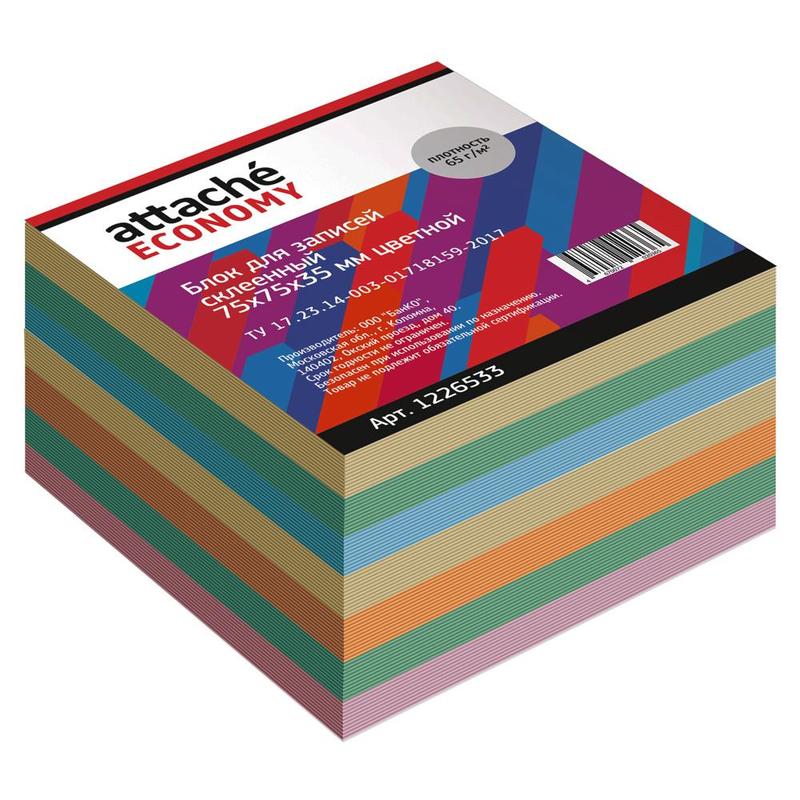 Блок для записей Attache Economy 75x75x35 мм разноцветный проклеенный (плотность 65 г/кв.м)