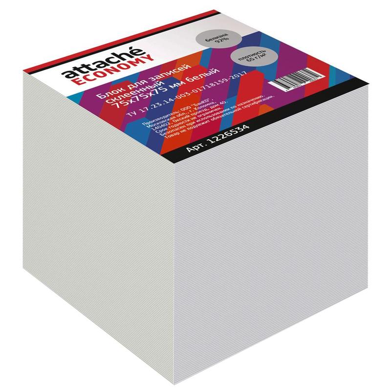 Блок для записей Attache Economy 75x75x75 мм белый проклеенный (плотность 65 г/кв.м)