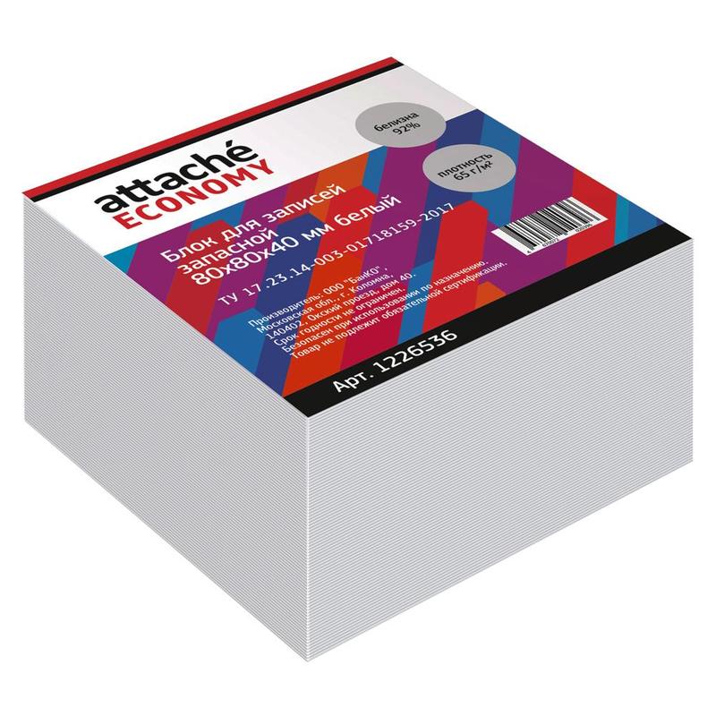 Блок для записей Attache Economy 80x80x40 мм белый (плотность 65 г/кв.м)