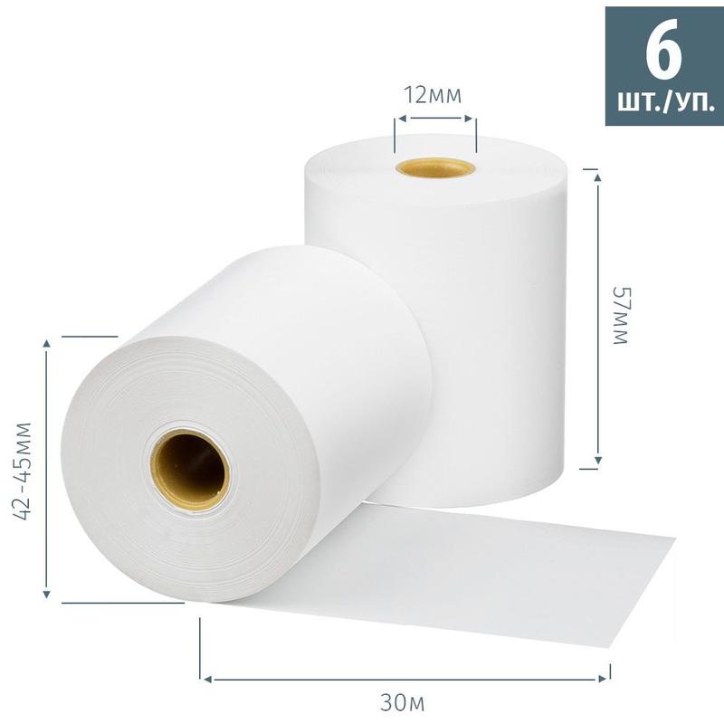 Чековая лента из термобумаги Promega 57 мм (диаметр 42-45 мм, намотка 30 м, втулка 12 мм, 6 штук в упаковке) (487531)