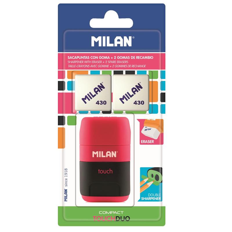 Набор ластик-точилка для карандашей с двумя отверстиями, коллекция Compact Touch и 2 мягких каучуковых ластика. Мягкий квадратный ластик из синтетического каучука 430 может использоваться для стирания чернографитного карандаша со всех типов бумаги. Точилка для стандартных и утолщенных карандашей c прочным лезвием из углеродистой стали, со встроенной системой безопасных лезвий. Набор поставляется в блистере с европодвесом. Цвет в ассортименте: синий, оранжевый, розовый и зеленый (без возможности выбора).