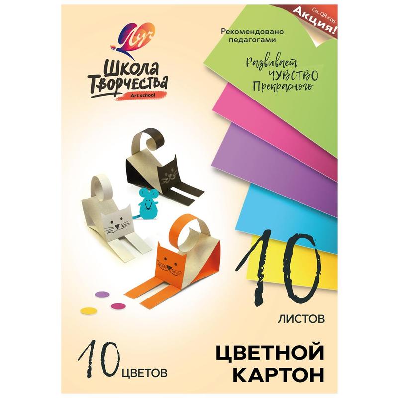 Картон цветной Луч Школа творчества (А4, 10 листов, 10 цветов, немелованный)