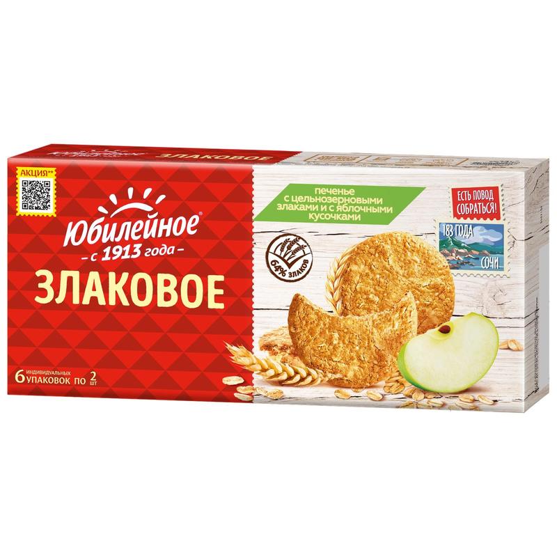 Печенье злаковое Юбилейное с цельнозерновыми злаками и с яблочными кусочками 171 г