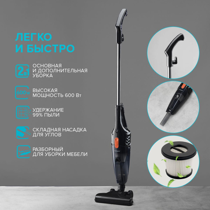 Вертикальный проводной пылесос SC - VC80H15 оранжевый, недорогой, компактный и мощный пылесос потребляемой мощностью 600 Вт! Конструкция 2 в 1 позволяет совершать уборку напольного покрытия, ковра и различных предметов интерьера. Пылесос оборудован циклонической системой сбора пыли, не требующий дополнительных расходных материалов. Контейнер легко снимается, очищается и промывается водой. HEPA фильтр удерживает до 99% пыли, легко моется и рассчитан на весь срок службы прибора. Встроенная в корпус щелевая насадка не требует дополнительного места для хранения. Комплектуется универсальной щеткой пол/ковер, насадкой мебель/щель.Товар относится к ценовому сегменту "эконом". Имеет базовые характеристики и более простую упаковку. Отвечает основным требованиям потребления.