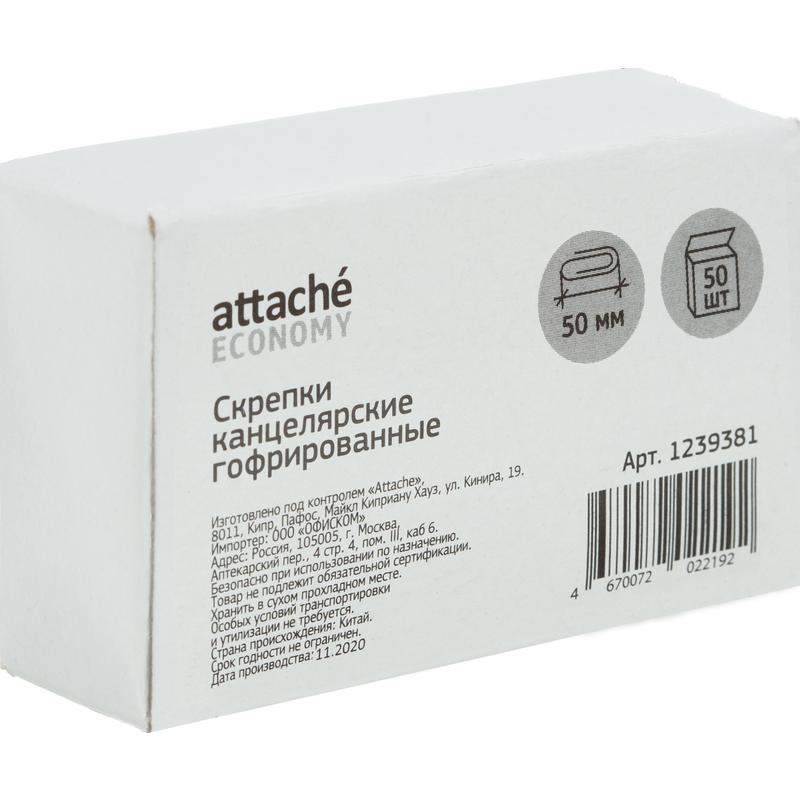 Скрепки Attache Economy стальные гофрированные 50 мм (50 штук в упаковке)