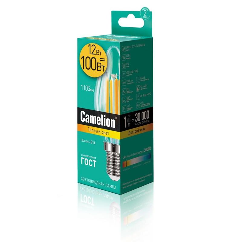 Лампа светодиодная Camelion LED12-FL HW 12Вт E14 3000К 1105Лм 220В 13708 Светодиодная лампа Camelion сочетает в себе декоративные качества лампы накаливания и современные технологии. Такая лампа идеальна для совместного использования с открытыми или прозрачными светильниками, имеющими патрон под миниатюрный винтовой цоколь. Преимущества: Низкое тепловыделение во время работы лампы позволяет использовать в светильниках, критичных к повышенному нагреву; Экономит до 90% электроэнергии; Уровень цветопередачи позволяет заменить традиционные лампы без ущерба для качества света; В свете Camelion низкочастотные пульсации; Не выделяет при работе ультрафиолетовое и инфракрасное излучение; Мгновенное включение; Экологичность и безопасность в эксплуатации. Применение: Декоративное освещение.