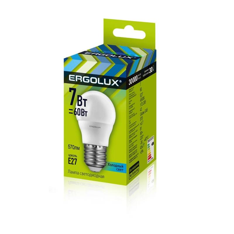 Лампа светодиодная Ergolux 7 Вт Е27 шарообразная 4500 К холодный белый свет