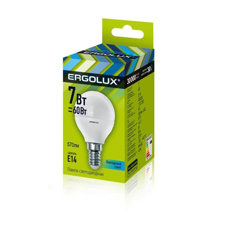 Лампа светодиодная Ergolux 7 Вт Е14 шарообразная 4500 К холодный белый свет
