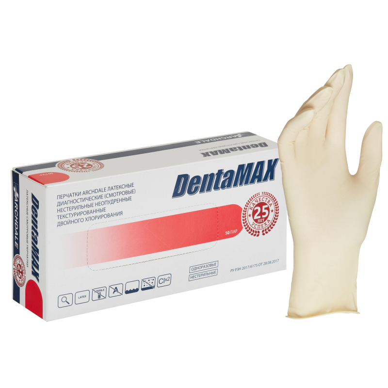 Перчатки латексные смотровые нестерильные неопудренные двойного хлорирования DentaMax. Область применения: процедуры, требующие применения неопудренных перчаток (стоматология и т.д.), наличие аллергических реакций на пудру у персонала и пациентов. Перчатки подвергаются двукратному промыванию хлорсодержащими растворами для практически полного вымывания белков латекса, что способствует существенному снижению аллергенности. Текстура по рабочей поверхности, неопудренные, имеют неанатомическую форму. Манжета заканчивается валиком. Размер: XL. Количество в упаковке: 100 штук (50 пар).Изделие сделано из латекса натурального каучука, который может вызвать аллергическую реакцию.