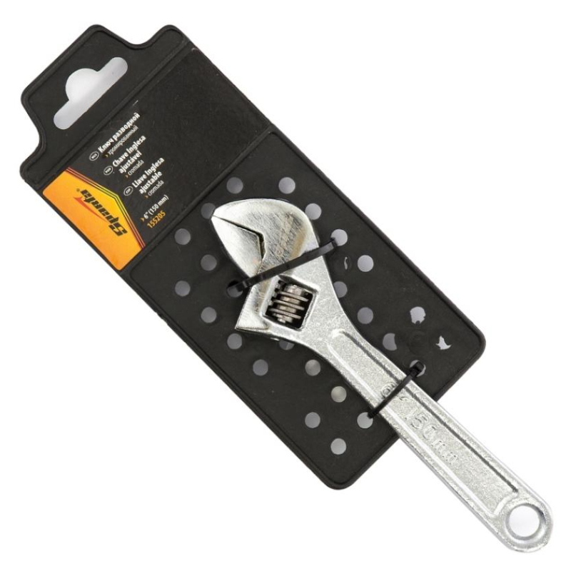 Разводной ключ предназначен для монтажа и демонтажа крепежных изделий. Встроенный в тело ключа червячный винтовой механизм защищен от коррозии. Изготовлен из инструментальной стали. Селективная закалка. Защитное хромовое покрытие. Позволяет работать с крепежом различного размера. Комплектность: ключ разводной - 1 шт.