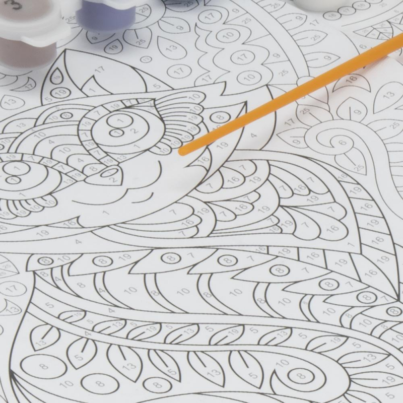 Популярные антистресс-сюжеты адаптированы для детей. Кроме снятия стресса и настроя на созидание, рисование по номерам способствует развитию мелкой моторики и воображения, а также формирует чувство цвета и художественный вкус. Плотный картон с нанесенной схемой, качественные акриловые краски и оптимальное количество цветов (8 цветов) позволяют развивать ребенка и организовать досуг.
