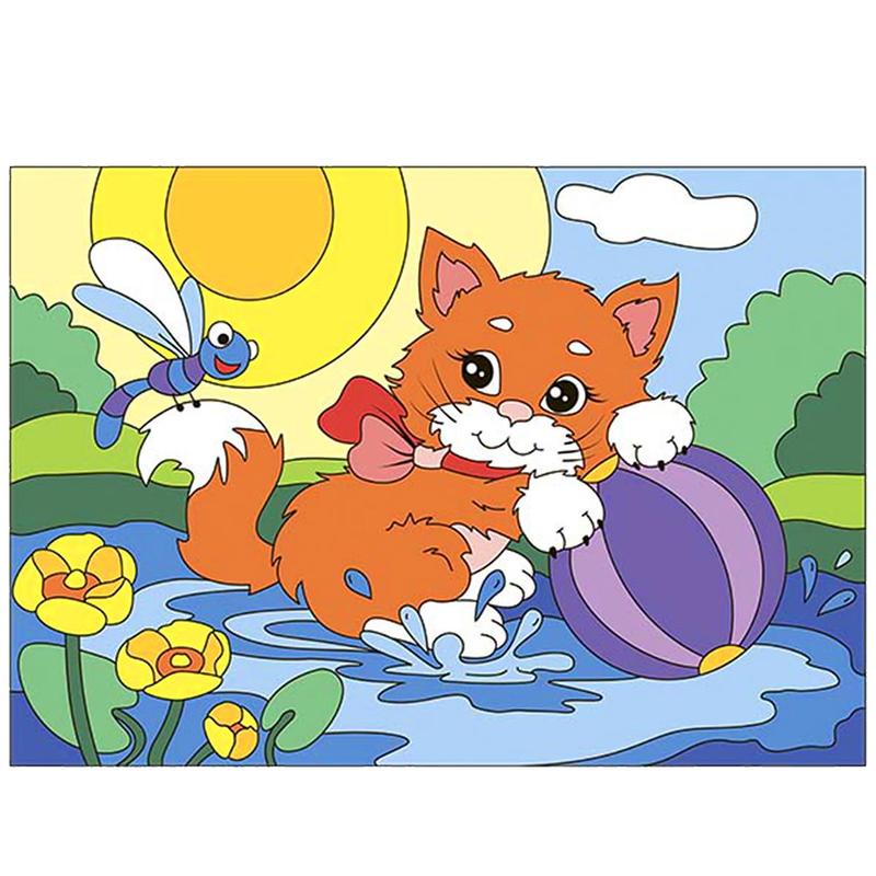 Симпатичный мультяшный персонаж так и просится под кисть художника. Плотная основа, яркие краски (8 цветов + 1 баночка с лаком), входящие в состав набора, сделают художником любого ребенка. Рисование по номерам не только дарит положительные эмоции, но и снимает стресс, развивает мелкую моторику и способствует формированию чувства цвета. Размер готового изделия: 30x20,5 см.