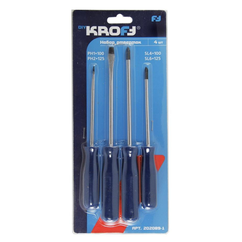 Набор отверток Kroft, 4 шт.Набор включает в себя наиболее используемые в быту отвертки. Пластиковая рукоятка удобно лежит в руке, не натирает ладонь при использовании и легко очищается при загрязнении.