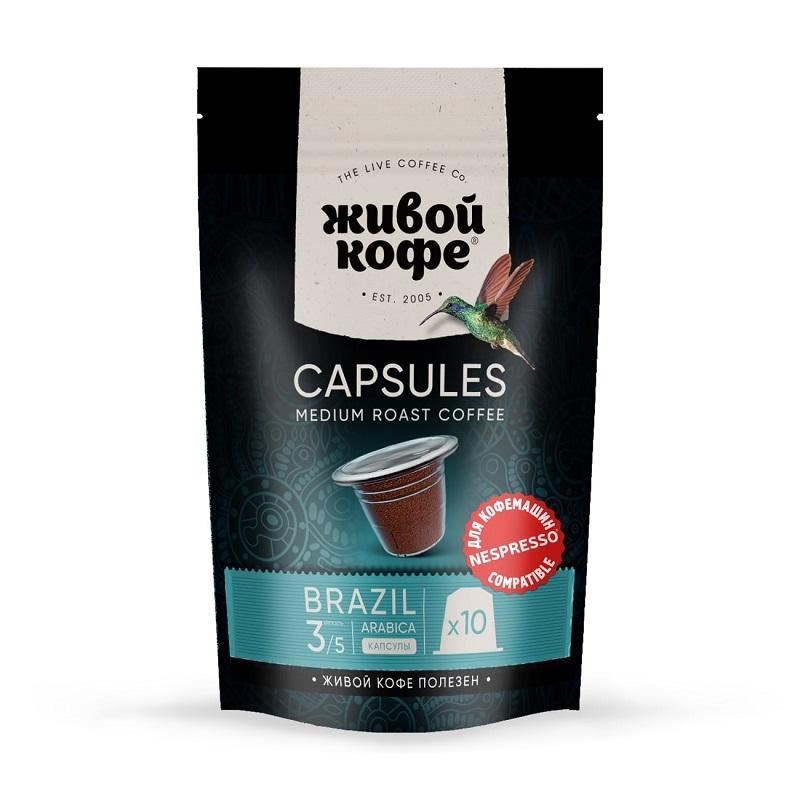 Кофе в капсулах для кофемашин Живой Кофе Brazil Rio-de-Janeiro (10 штук в упаковке)