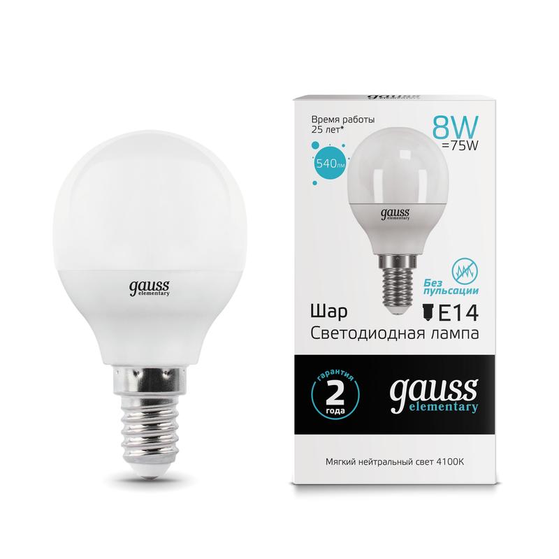 Лампа светодиодная Gauss LED Elementary 8 Вт E14 шарообразная 4100 K нейтральный белый свет