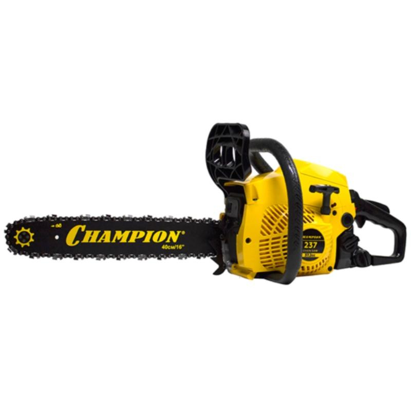 Пила цепная бензиновая Champion 237-16 легкая, компактная и сбалансированная бензопила для применения на садовом участке. Может справится с распиловкой дров, опиливанием деревьев, с небольшими строительными работами. Особенности конструкции: Блокировка курка газа Тормоз пильной цепи Регулируемый маслонасос Ассиметричная система амортизации (4 амортизатора) Праймер Система "Легкий старт" 2 шпильки крепления шины Съемный цепе уловитель Быстрый, без инструментальный доступ к воздушному фильтру Моющийся воздушный фильтр с нейлоновой сеткой Боковое натяжение цепи
