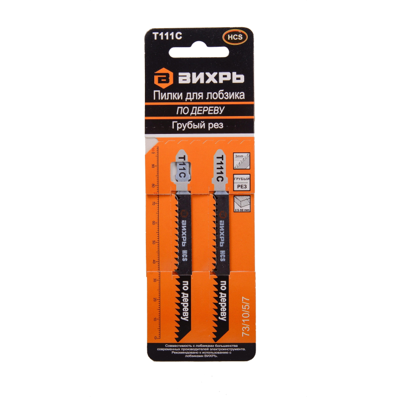 Пилка для лобзика Вихрь Т111C по дереву,груб.рез 100х75мм (2шт.)(73/10/5/7)