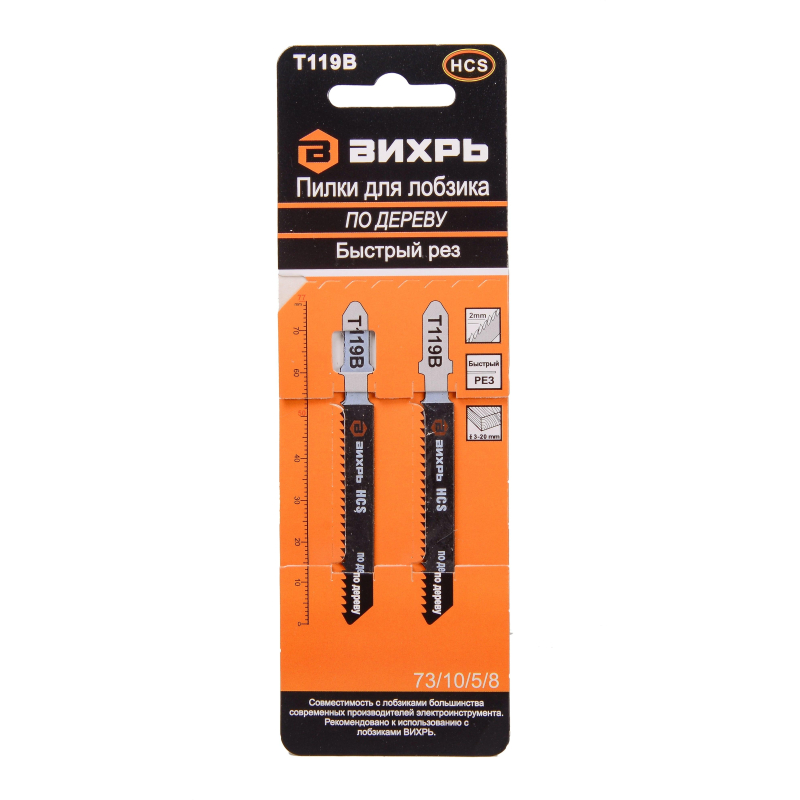 Пилка для лобзика Вихрь Т119В по дереву,быстр.рез 76х50мм(2шт.)(73/10/5/8)