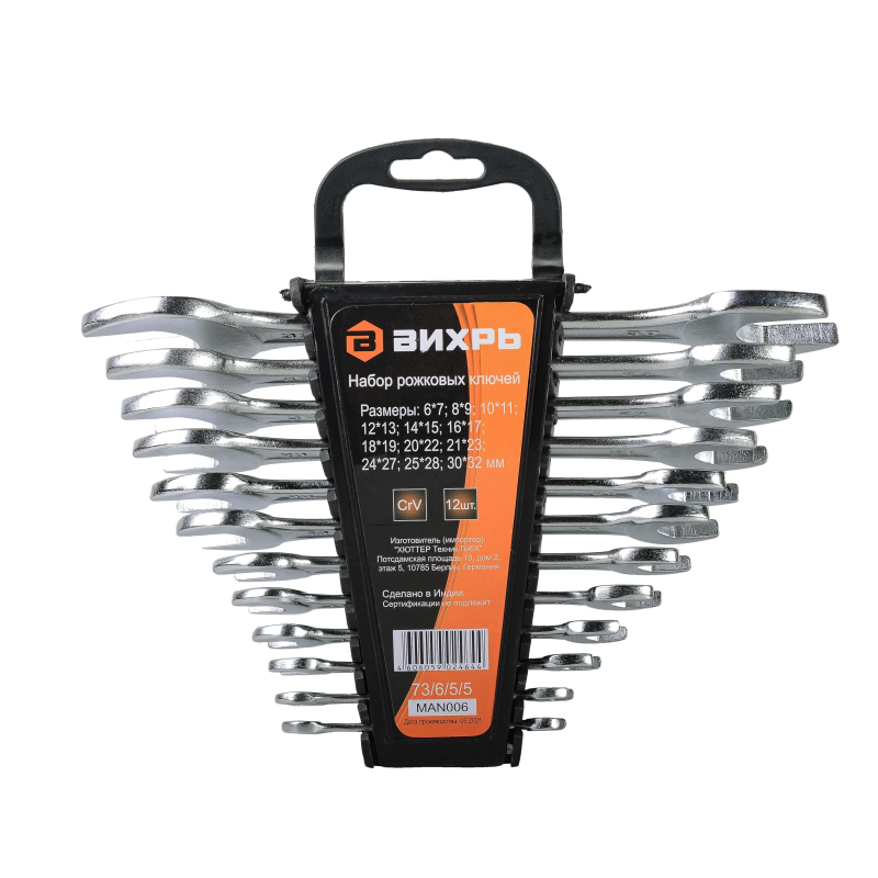 Набор рожковых ключей Вихрь включает 12 гаечных ключей, изготовленных из качественной стали.Рожковый гаечный ключ - незаменимый инструмент при сборке и разборке любых металлических конструкций, эффективен для работы в труднодоступных местах.Изготовлены из хромованадиевой стали. Имеют хромированное покрытие.Размер ключей: 6 - 32 мм.Внешний вид и/или характеристики товара могут быть изменены производителем в соответствии с производственным процессом.
